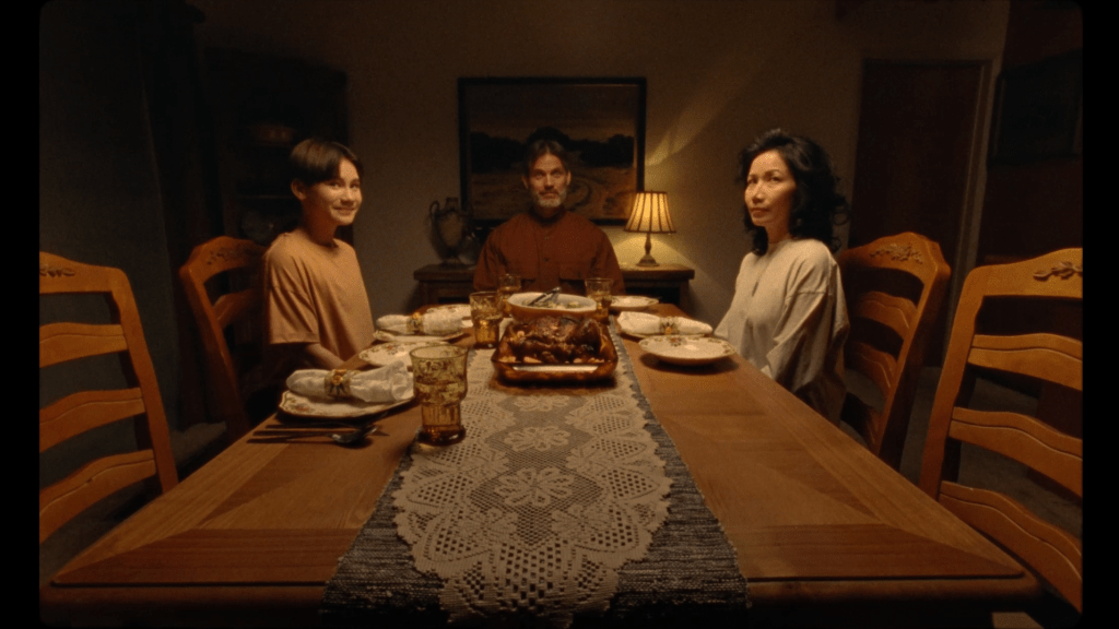Father cannot hold the film alone though. Vivien Ngô is excellent as the newly recruited Daughter. Saying very little, she communicates all she needs to the audience. There is resilience and intelligence glimpsed the instant Daughter appears on screen, and the viewer is immediately willing her to escape. What makes Le’s performance so strong is that, although told that there have been other Daughters, the audience have not seen them and yet they instantly know that this version is unlike the others. This is a smarter Daughter, one who might stand a chance against the strange man at the head of the house. Elyse Dinh also gives a complex performance through a character who doesn’t on the surface appear to have much going on. The hidden depths to Mother are drawn out through Dinh’s performance and are so strong one can almost imagine the film as being her story.