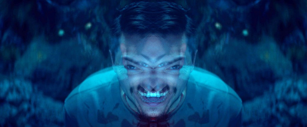 On a technical level, Hypochondriac continues to hit it out of the park. The look of the film taps into the work of Adam Egypt Mortimer and Richard Kelly’s famous texts, but not in the sense of trying to replicate either. It’s more as though there is an unconscious thread that connects these three films following a lead character in crisis that encourages them to be filmed in similar ways. In Hypochondriac the colours are a mixture of grey and teals, Dustin Supencheck’s cinematography is edged with shadows as Will’s past trauma starts to take hold of him. The only place not presented in this way is Will’s place of work. Although somewhere that Will frequents, it is not his space and so reflects the inner mind of Blossom more than he. There are so many gorgeous shots to be found amongst the darkness, but it’s a misty mountain top closing shot that really sings. The score of Robert Allaire (who incidentally composed Egypt Mortimer’s debut Some Kind of Hate) is affecting and haunting, slowly creeping in, building in intensity as Will’s breakdown intensifies. Allaire’s score becomes an aural indicator to Will’s mental stability, and is one that is needed for home consumption as soon as possible.